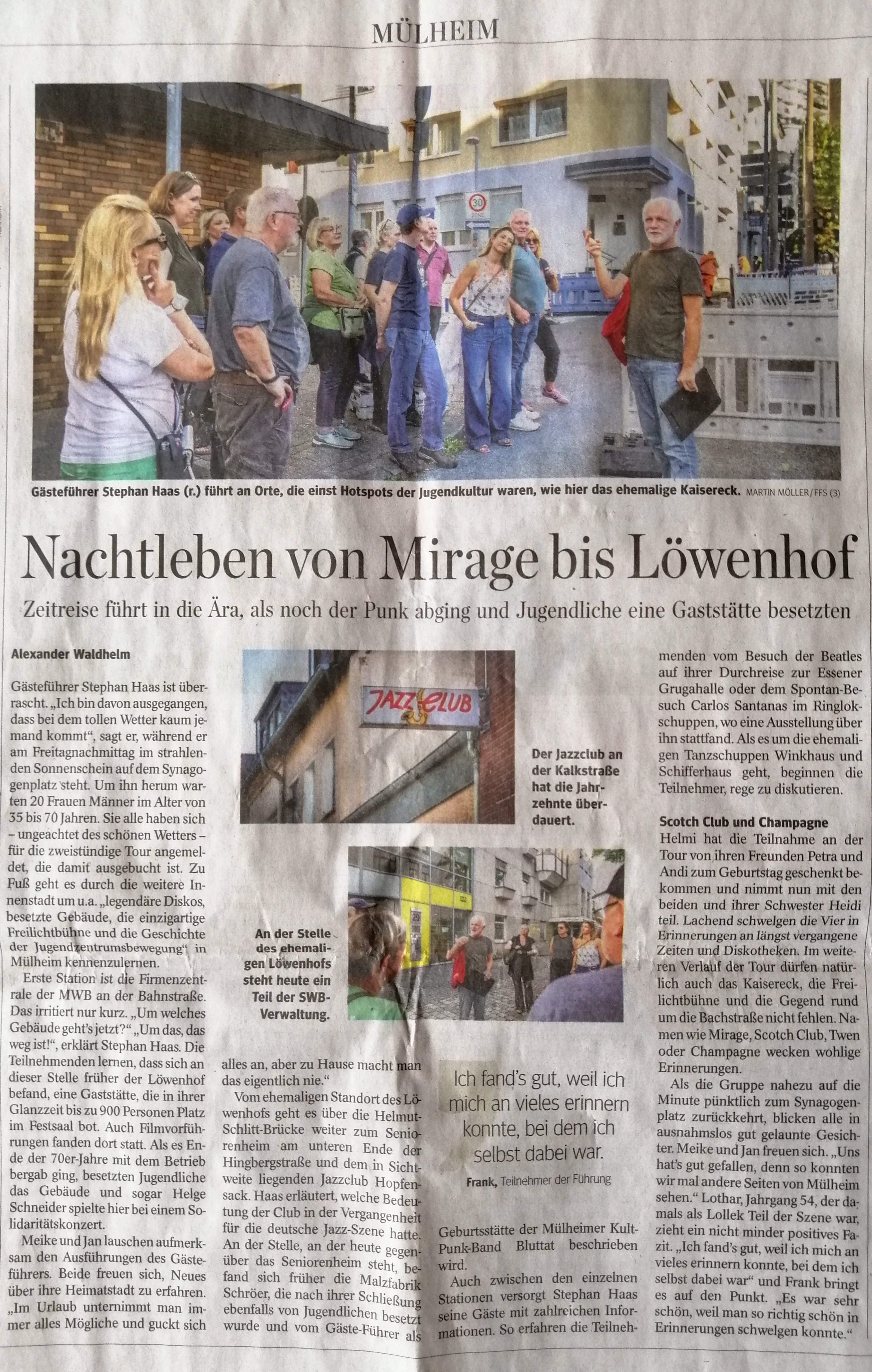 Aber der Rundgang beinhaltet noch einiges mehr: legendäre Musikkneipen und Discotheken, besetzte Gebäude und die Freilichtbühne.